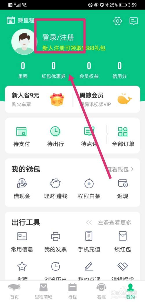 选择上方的“登录/注册”;