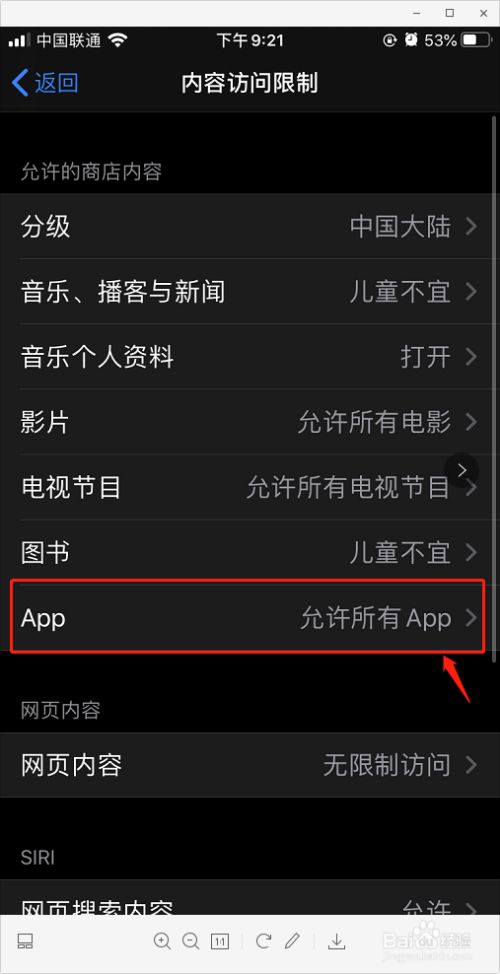 内容和隐私拜候限制页面,选择内容拜候限制。