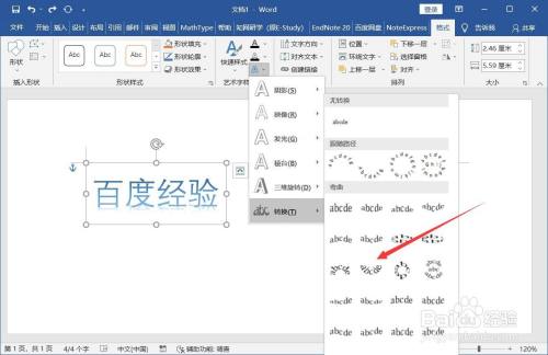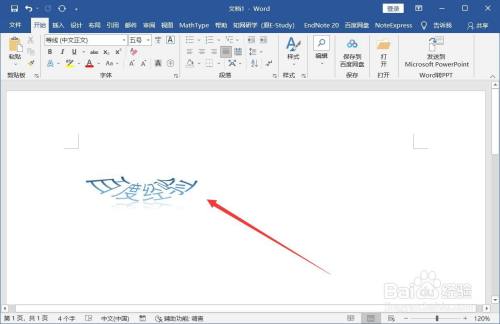 点击一下返回文档即可看到艺术字设置了弯曲结果。