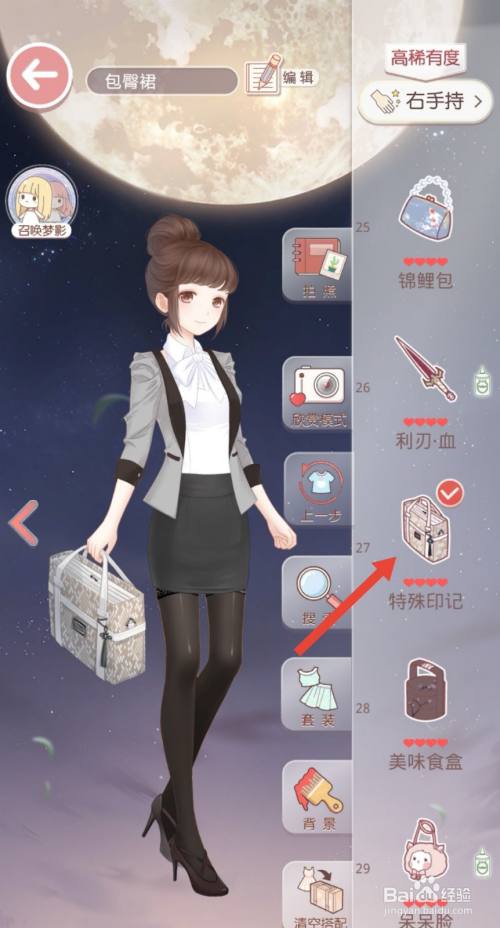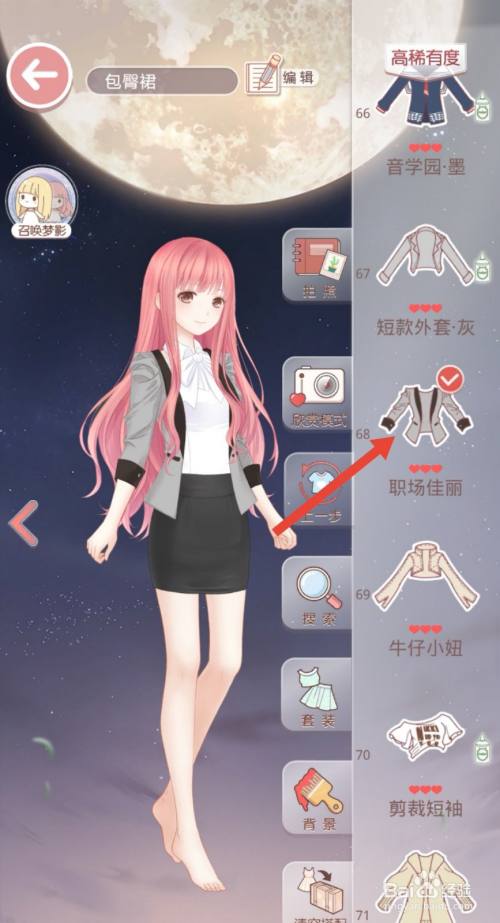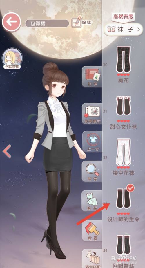 工具/原料华为V20Android10.1.0.172古迹暖暖8.0.2方式/步骤1选择黑色包臀裙,本次搭配走职业风。2选择一件白色上衣。3春天气候还有些微凉,搭配一件中长袖薄外衣。4发型选择丸子头。5鞋子选择简单条目的黑色高跟鞋。6穿上黑色丝袜。7手提一袋公函需要处置。END