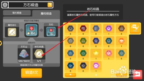 工具/原料Apple iPhone11iOS13宝可梦大探险2.4.0方式/步骤1在宝可梦大探险的探险岛点击大本营,进入大本营2在大本营里点击左侧的强化3在弹出来的页面选项中点击方石锻造4在方石锻造操作界面点击属性锻造45放入方石和岩石结晶,点击下方的起头锻造按钮6期待程序完当作,就获得了属性方石END
