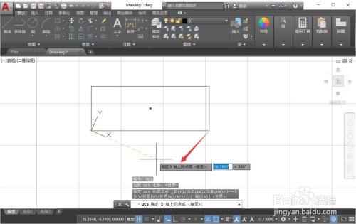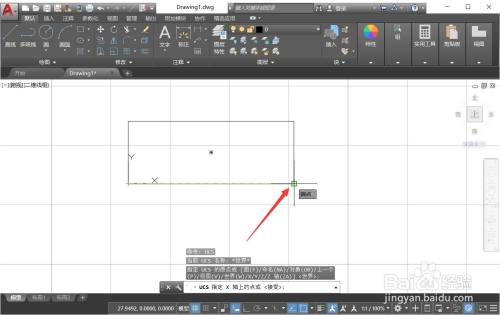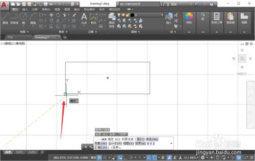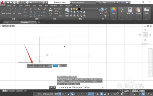 指定XY平面的的偏向,在矩形内部点击一下即可,新的坐标系设置完当作,原点在矩形左下角点。
