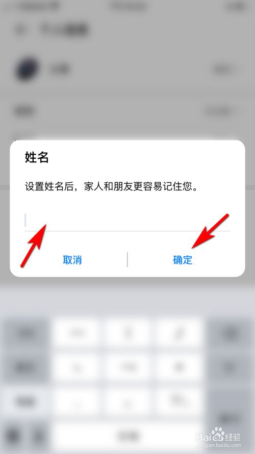 在文本框中输入内容后,点击确定的选项即可设置小我姓名。