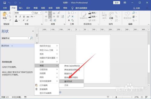 打开visio,点击【更多外形】-【常规】-【根基外形】。