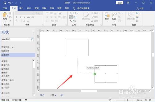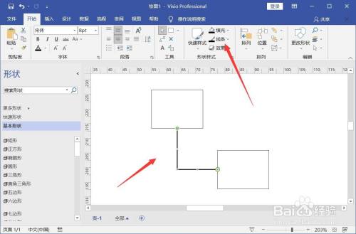 在图面中插入两个矩形,点击东西中的毗连线。
