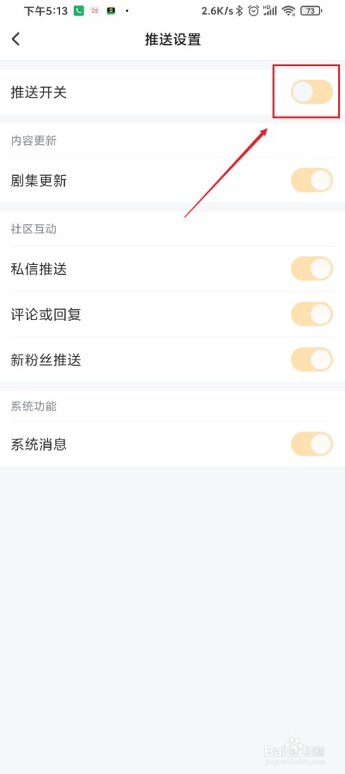 5、在推送设置界面将“推送开关”的按钮封闭即可