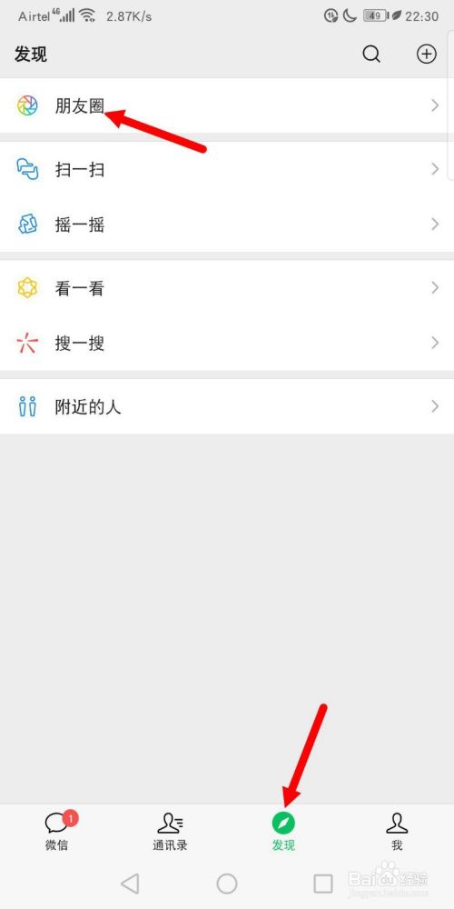选择保留的视频文件,点击【发现】→【朋友圈】;