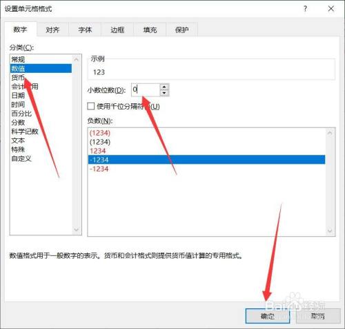 选择格局类型为【数值】,小数点位数随意,点击【确定】即可改变为数字形式。