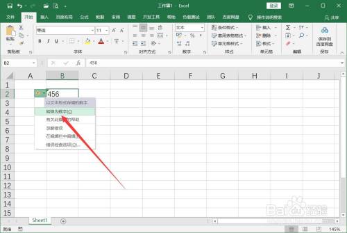 在弹出的窗口中点击【转换为数字】即可。