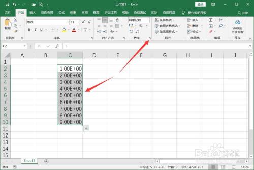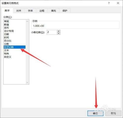 选择数字类型分类中的某个选项,例如科学计数,点击【确定】即可。
