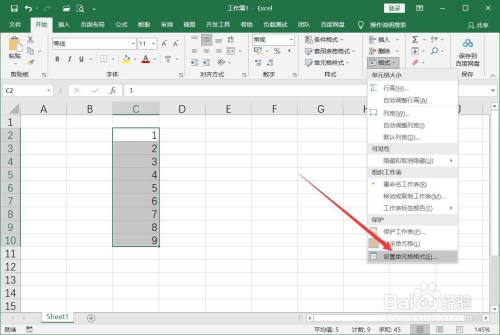 选中要设置格局的数据,右键鼠标选择【设置单位格格局】。