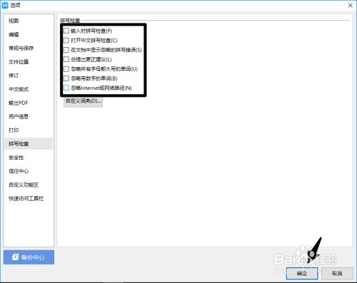 将拼写查抄功能封闭,点击【确定】。