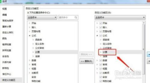 5、在右边的自界说功能区里面选中【公式】