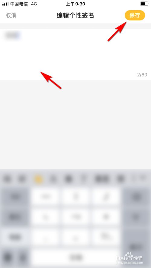 在文本框中输入内容后,点击右上角保留的选项即可设置小我本家儿页个性签名。