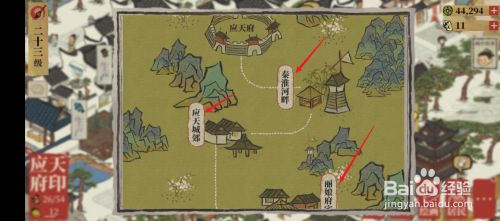 应天府探险使命中需要用到各类颜料,选择一个目标地址击去探险。