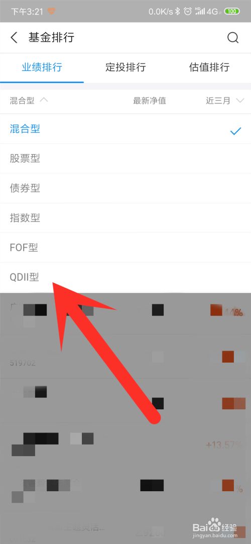 我们在基金排行界面,选择下方的箭头,选择其他类型。