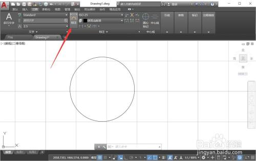 打开CAD软件,点击【默认】-【画图】-【圆】,在结构中画一个圆。
