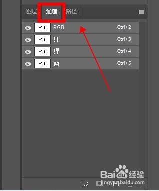 切换到通道面板,按住Ctrl键,点击RGB通道。获得选区。