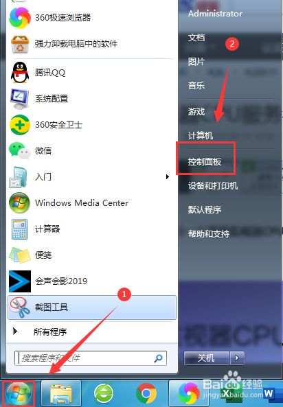 点击电脑开始菜单,再选择“节制面板”选项。