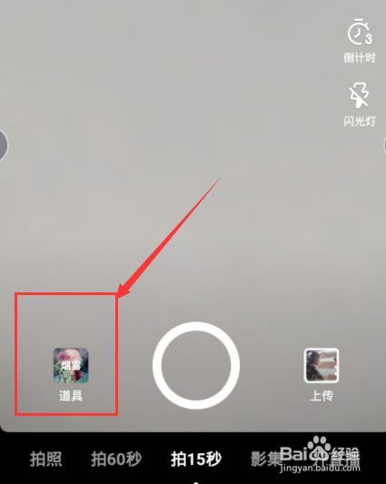 第二;在视频拍摄界面点击左下角【道具】东西。