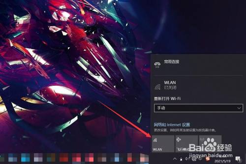 点击电脑桌面右下角的收集图标,打开WLAN。