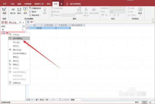 在左侧视图中右键表,选择【设计视图】,确认表名。