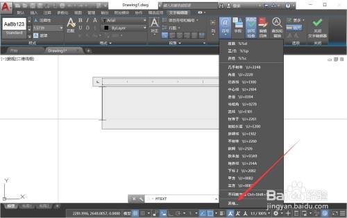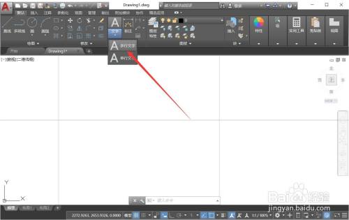 打开CAD,在默认菜单栏中点击【文字】-【多行文字】。