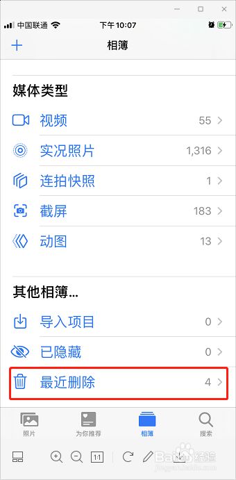 删除照片后,返回到手机的相薄本家儿页面,下拉至最底层的找到其他相薄,并点击比来删除选项,并进入。