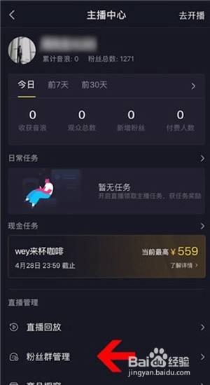 4、在直播办理板块点击粉丝群办理。