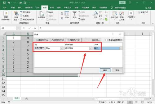 选择按照A列单位格数值降序摆列,点击【确定】即可。