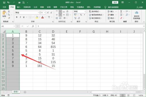 打开excel表格,输入几列数字,选中排序依据列,例如A列。
