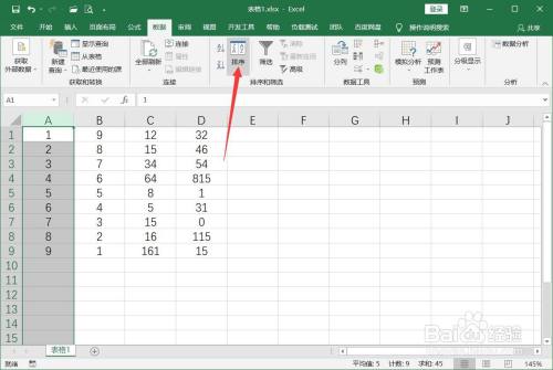 点击【数据】-【排序】。