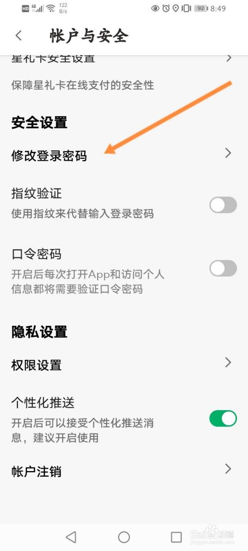 点击帐户与平安。