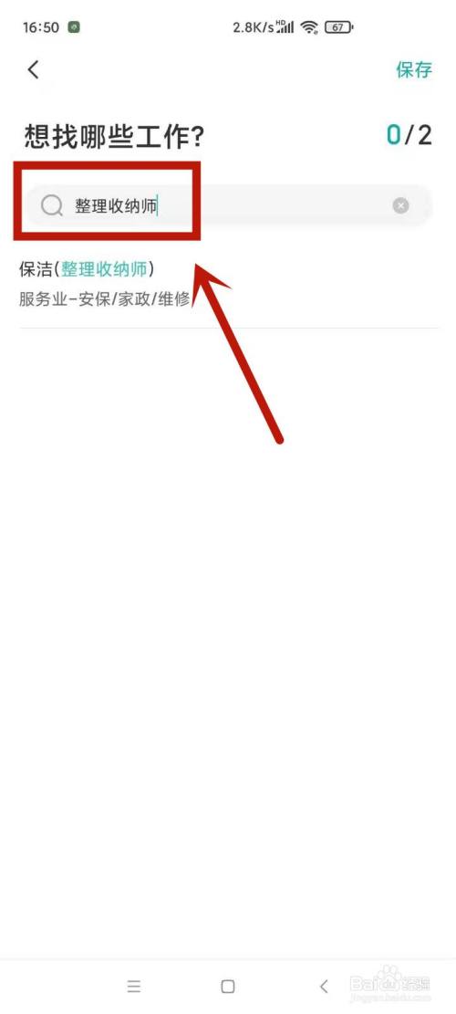 在想找的工作类型中添加上“清算收纳师”,点击保留。
