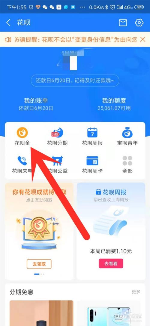 我们在花呗界面,点击花呗金,进入花呗金界面。