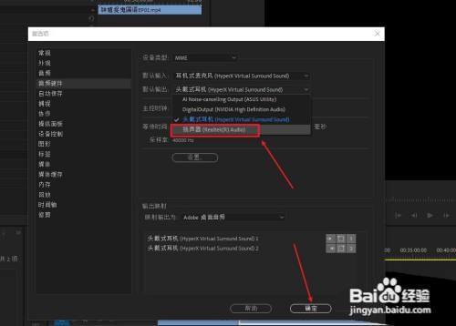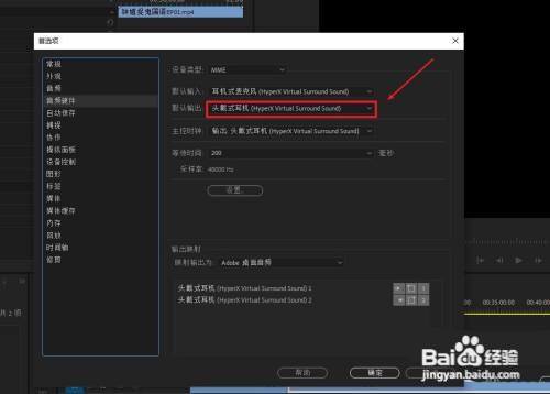 第三步:在首选项窗口中,打开音频硬件项目栏,找到默认输出选项框。