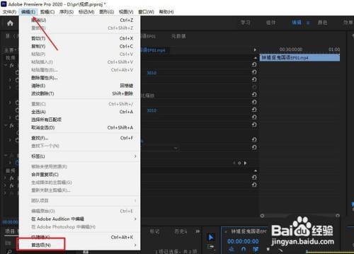 第二步:在编纂菜单中,打开首选项。