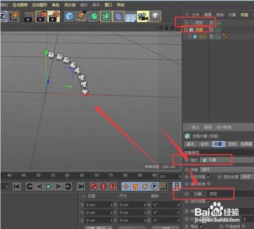 第六步:在对象模式下进行线条的克隆对象添加,即可实现放射克隆。