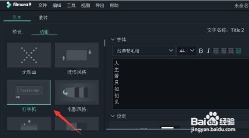 第六步:文字设置为竖排后,在文本动画中找到打字机选项点击确定。