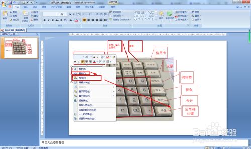 复制收银机键盘的图片——在PPT中同时按Ctrl+粘贴图片,或右击鼠标,点击粘贴。