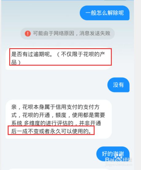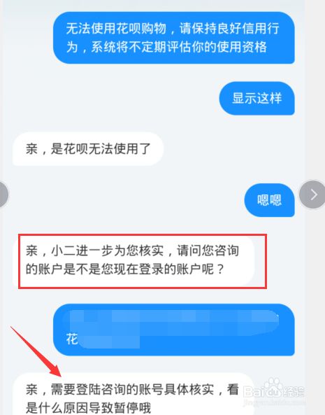 第五:利用受限制的账户扣问人工客服花呗受限原因。