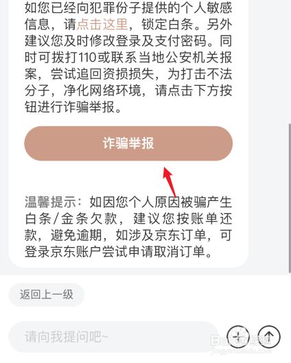 按照提醒进行操作后,点击诈骗举报。