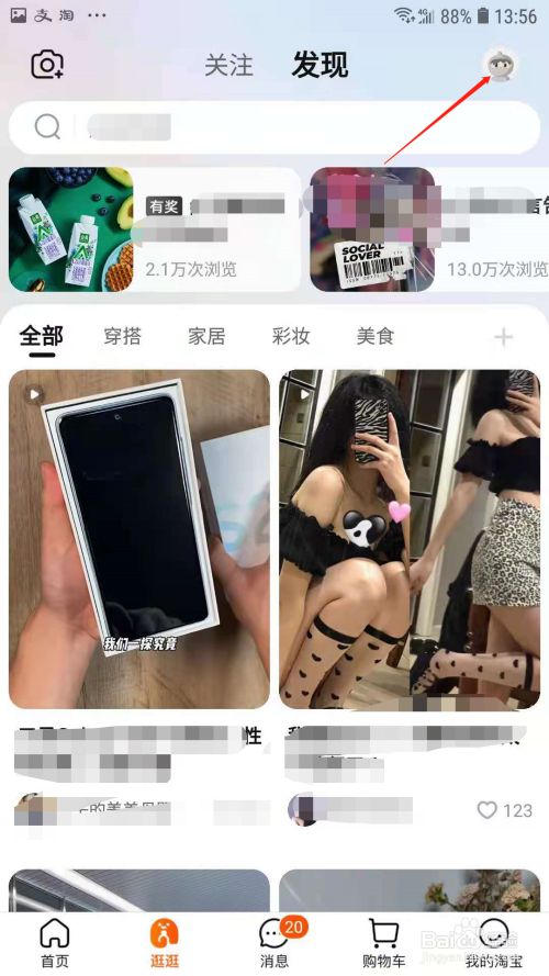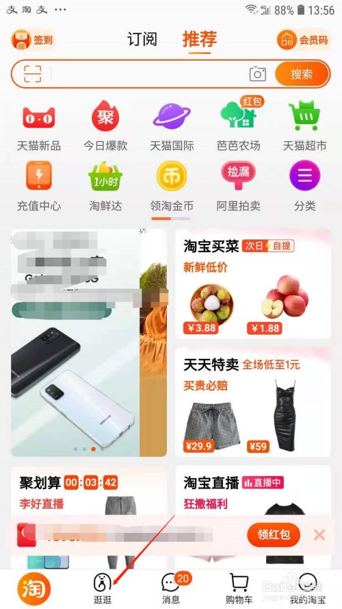首先打开手机淘宝App,点击下方的逛逛选项;