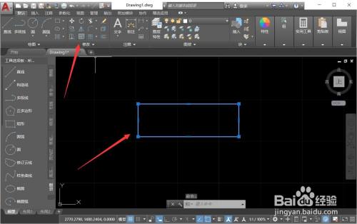 打开CAD,点击矩形画图东西画一个矩形。