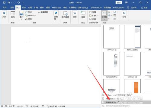 打开Word,点击【插入】-【文本框】-【绘制竖排文本框】。