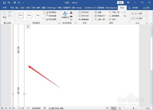 将文本框放置在左侧装订线处,拉长至整个页面长度。