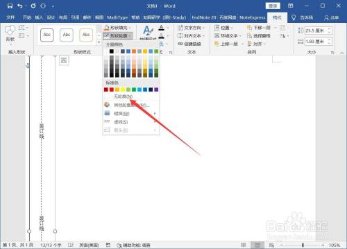 在文本框中输入虚线和装订线字样,点击【格局】-【外形轮廓】,设置为无轮廓。