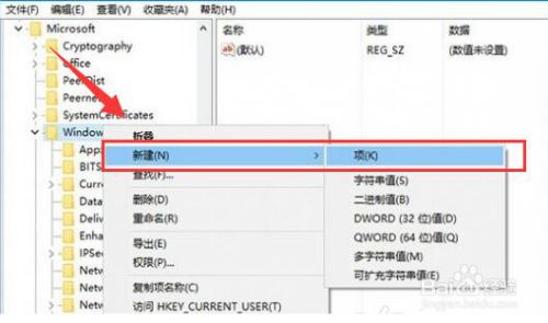 右键点击“Windows”,选择“新建”再选择“项(K)”,定名为“CloudContent“;
