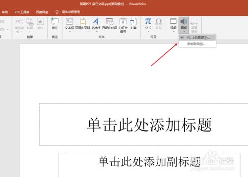 插入音频图标之后,按F5键,就会进入演示文稿,点击音频图标,就会播放音乐。