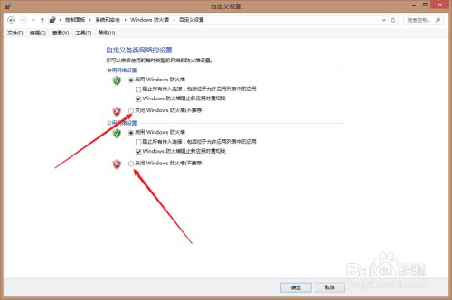 将专用收集和公用收集下方的封闭windows防火墙的单选按钮打上勾就可以了,这样就封闭了电脑的防火墙